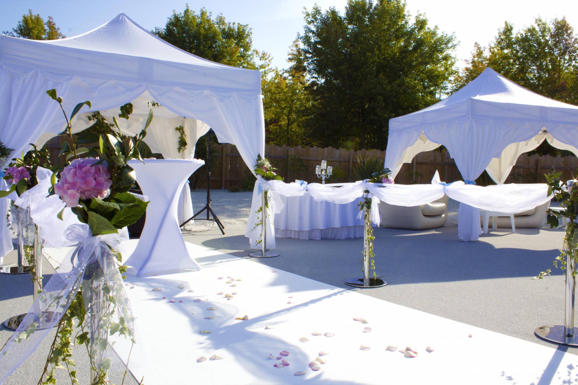 Nous pouvons vous proposer de vous organiser sur-mesure votre mariage, selon vos goûts, nous nous adaptons à votre budget. Organisation de la cérémonie, du repas, de la soirée, du bal, du DJ, etc.